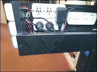 Los tomacorrientes del tablero están agrupados para que los dispositivos